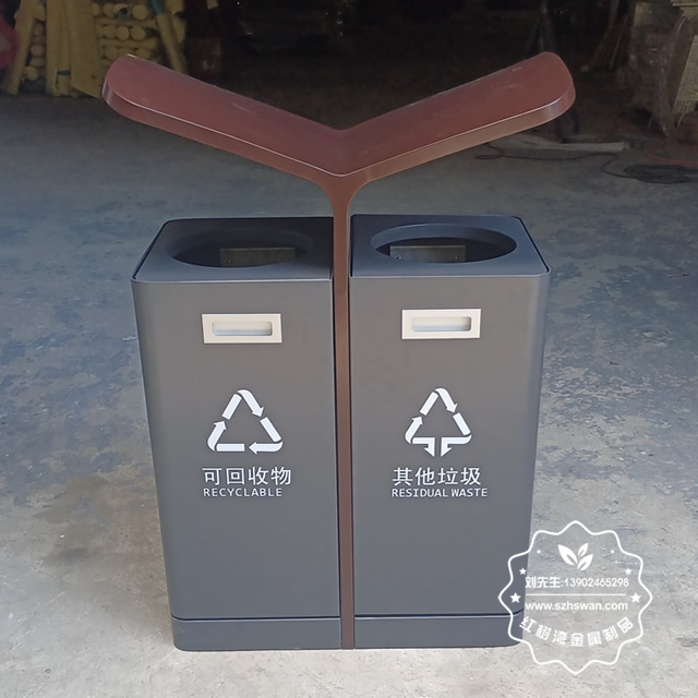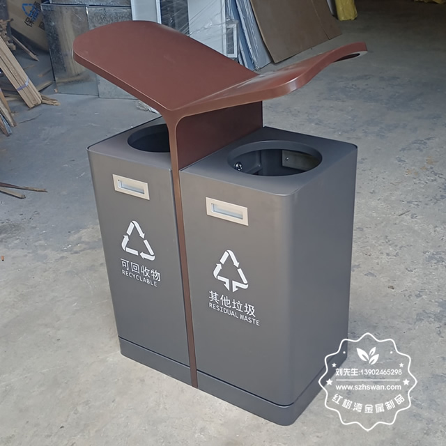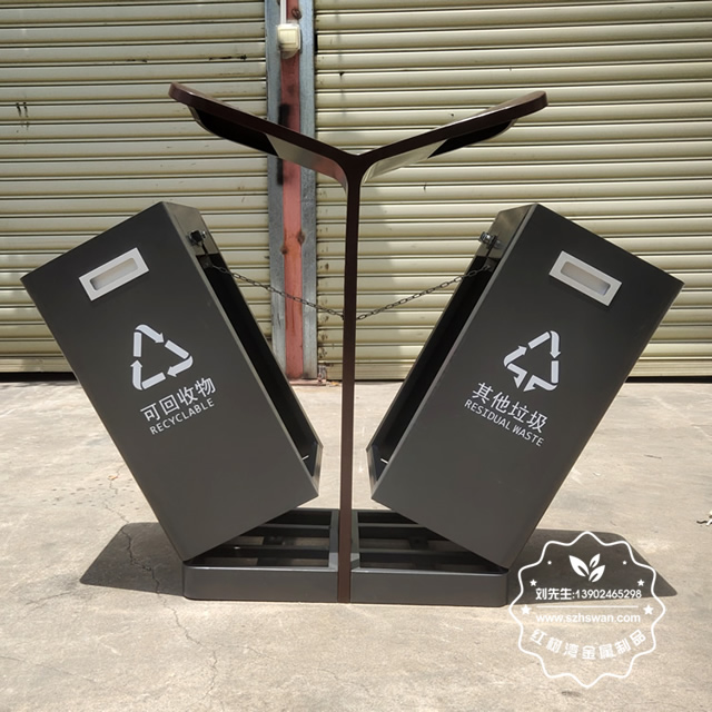 產(chǎn)品材質(zhì):戶外翼形噴塑不銹鋼分類垃圾箱采用201#,202#,304#優(yōu)質(zhì)不銹鋼材料模壓成型,堅固耐用;內(nèi)外表面光潔,減少垃圾殘留,易于清潔;配置鍍鋅板內(nèi)桶,便于垃圾清倒;
