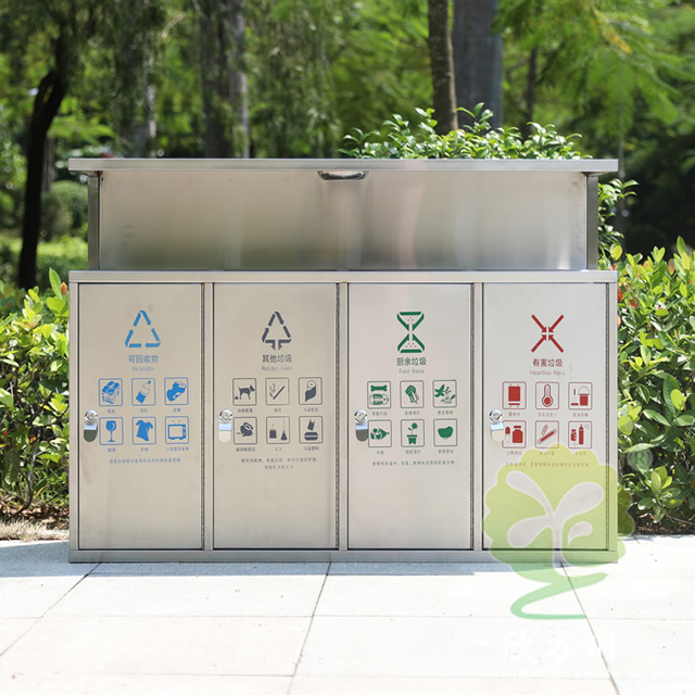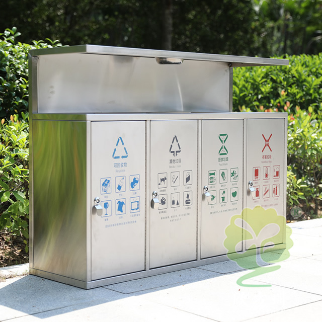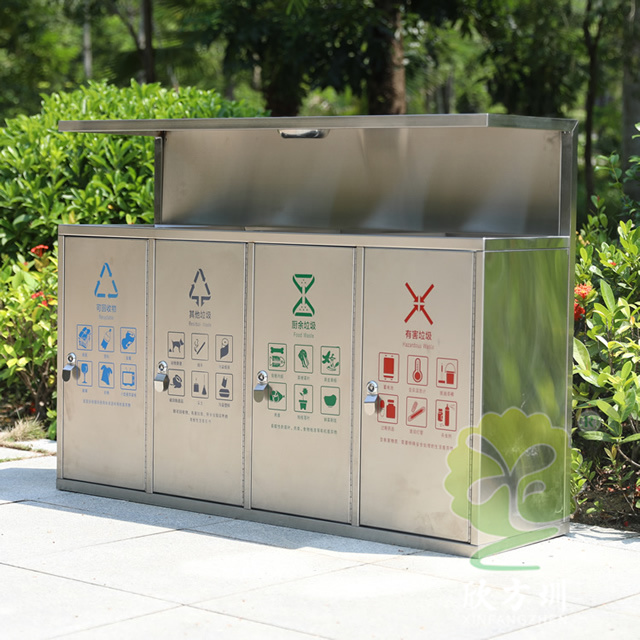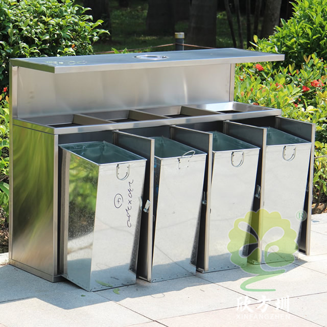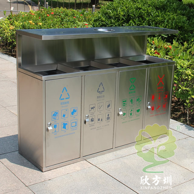 產(chǎn)品材質(zhì):戶外環(huán)衛(wèi)4分類不銹鋼垃圾箱采用201#,202#,304#優(yōu)質(zhì)不銹鋼材料模壓成型,堅(jiān)固耐用;內(nèi)外表面光潔,減少垃圾殘留,易于清潔;配置鍍鋅板內(nèi)桶,便于垃圾清倒;