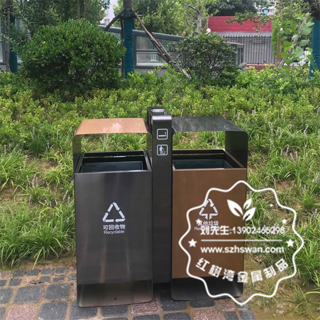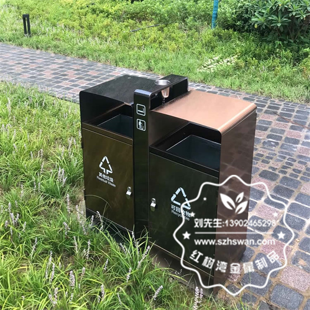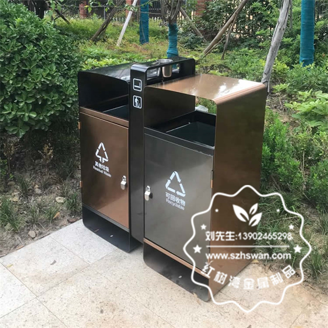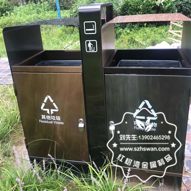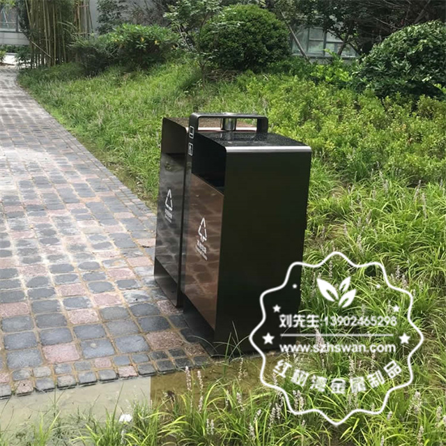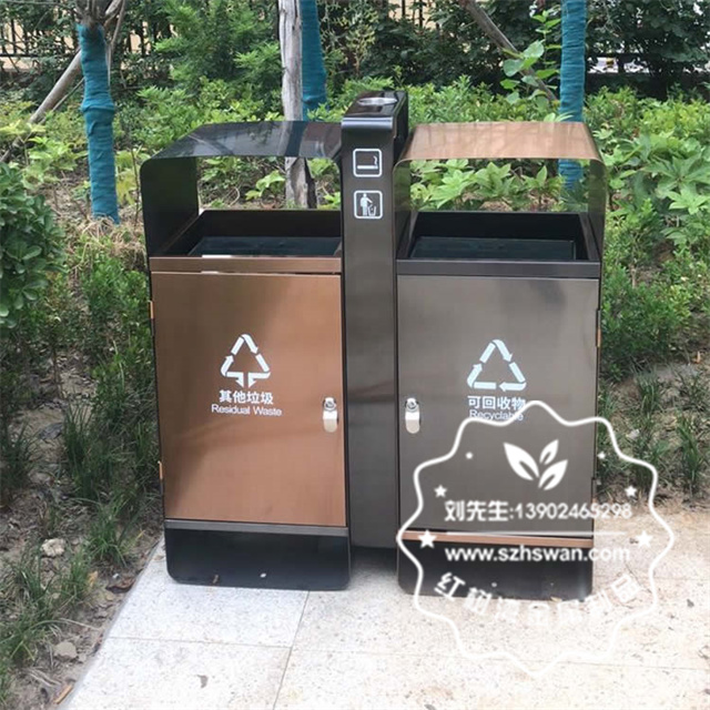 產(chǎn)品材質(zhì):戶外小區(qū)電鍍不銹鋼分類垃圾箱采用201#,202#,304#優(yōu)質(zhì)不銹鋼材料模壓成型,堅(jiān)固耐用;內(nèi)外表面光潔,減少垃圾殘留,易于清潔;配置鍍鋅板內(nèi)桶,便于垃圾清倒;