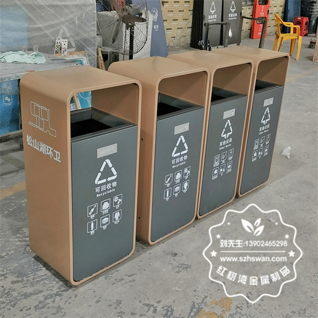 產品材質:廣東東莞松山湖電鍍不銹鋼分類垃圾桶采用201#,202#,304#優質不銹鋼材料模壓成型,堅固耐用;內外表面光潔,減少垃圾殘留,易于清潔;配置鍍鋅板內桶,便于垃圾清倒;