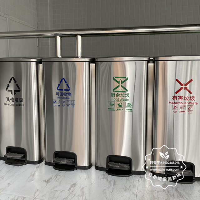 產(chǎn)品材質(zhì):不銹鋼腳踏式垃圾桶利用杠桿原理,由外筒、內(nèi)筒、筒蓋、支架、連桿、踏桿等部分組成。采用201#,202#,304#優(yōu)質(zhì)不銹鋼材料模壓成型,產(chǎn)品內(nèi)外光潔高檔大氣;