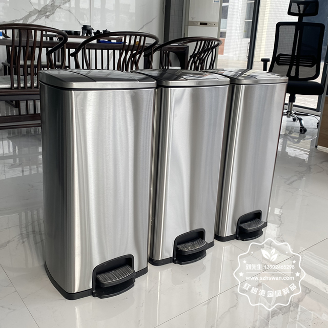 室內(nèi)30L不銹鋼腳踏式垃圾桶采用優(yōu)質(zhì)201不銹鋼無(wú)縫焊接成型,投口模具沖壓成型,邊角精細(xì)打磨拋光圓滑不割手,高檔大氣。