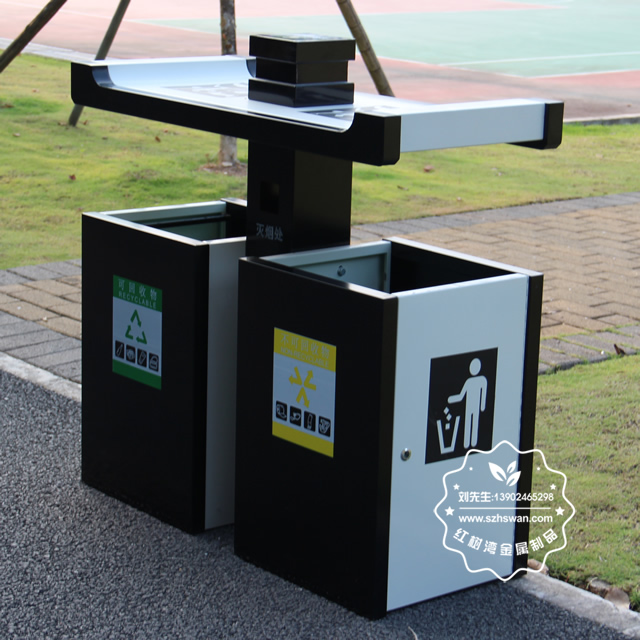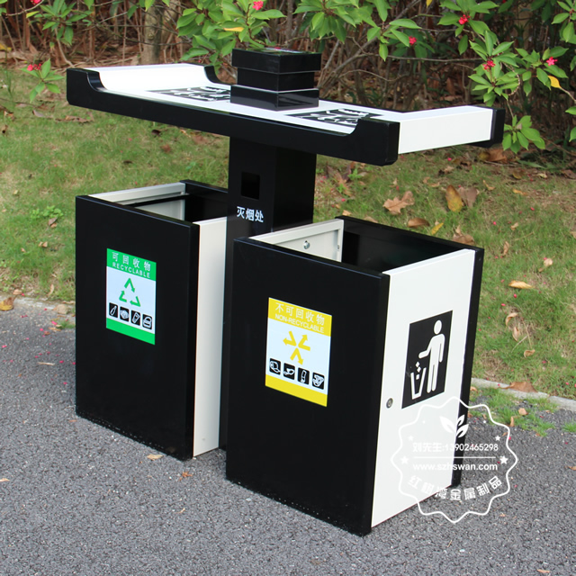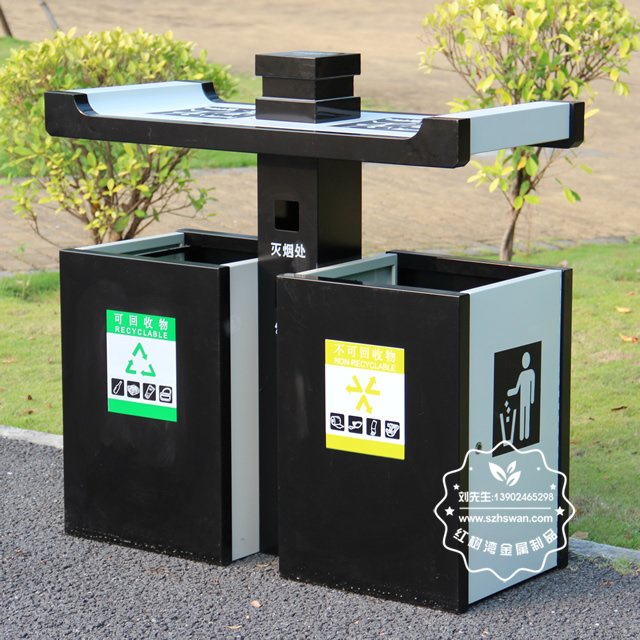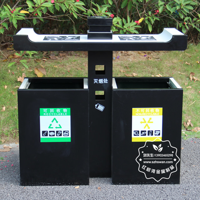 產(chǎn)品材質(zhì):戶外小區(qū)兩分類鋼制垃圾箱表面經(jīng)過(guò)除油、噴砂防銹處理后,再進(jìn)行酸洗磷化處理;表面清理后整體進(jìn)行靜電噴涂或烤漆處理,靜電噴涂是經(jīng)過(guò)流水線高溫固化爐固化后再出爐冷卻,漆面色澤耐久,防腐防銹;