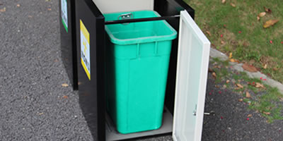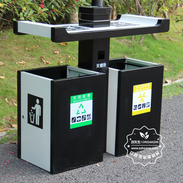 產(chǎn)品型號(hào):F348戶外小區(qū)兩分類鋼制垃圾箱