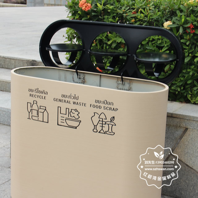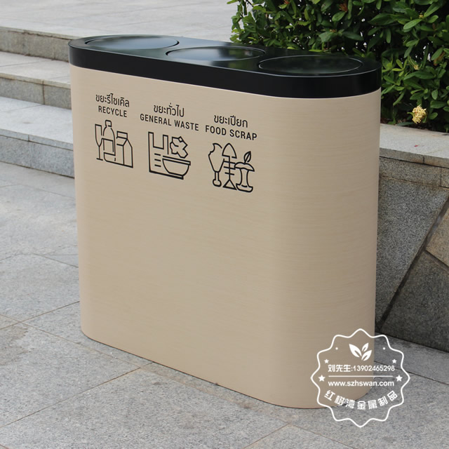 產(chǎn)品材質(zhì):出口鍍鋅板轉(zhuǎn)木紋分類垃圾桶采用優(yōu)質(zhì)冷軋鋼經(jīng)除油-除銹-表調(diào)-磷化處理后,表面采用汽車靜電粉末經(jīng)過180~220℃高溫烤漆,使粉末熔化黏附在金屬表面,雙層防銹,漆面色澤耐久;