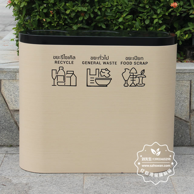 產(chǎn)品型號:JP118出口鍍鋅板轉(zhuǎn)木紋分類垃圾桶