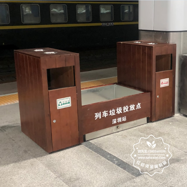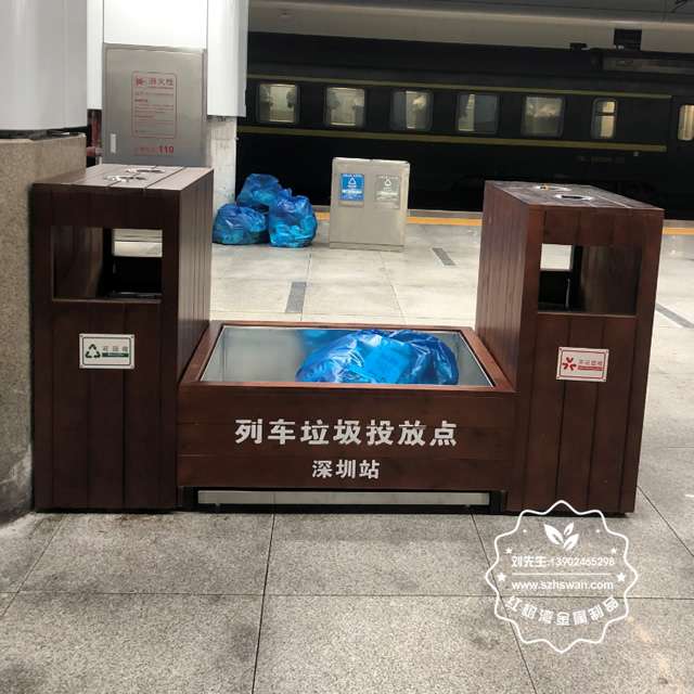 產品型號:G282火車站大型鋼木分類垃圾箱