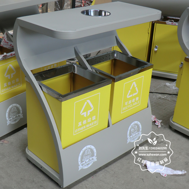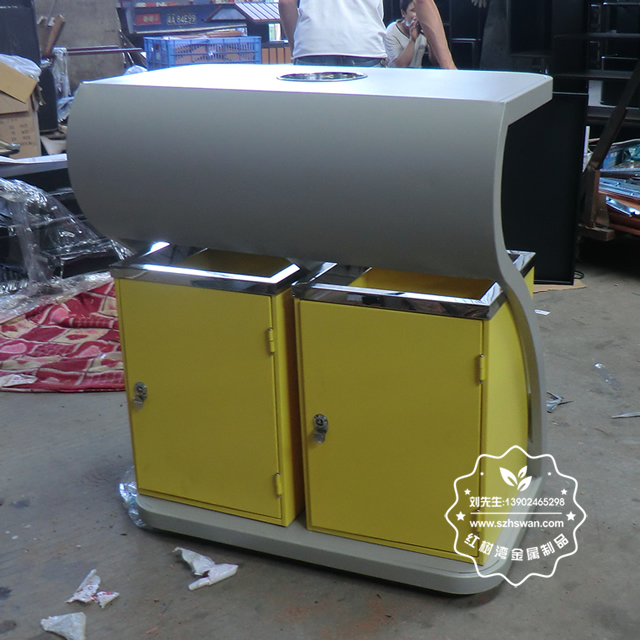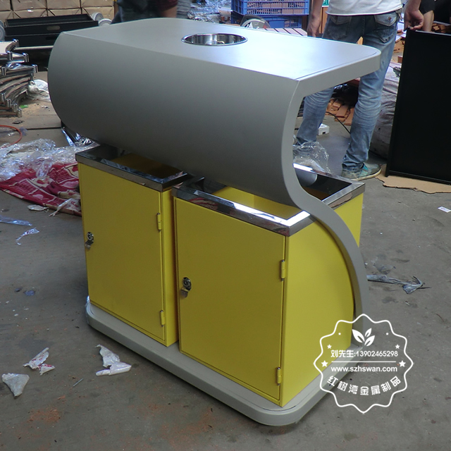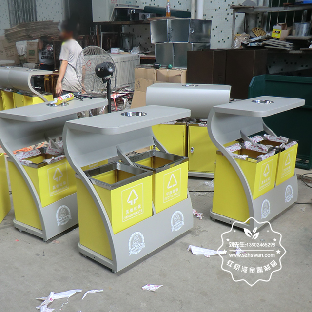 產(chǎn)品材質(zhì):環(huán)保鋼制垃圾桶表面經(jīng)過除油、噴砂防銹處理后,再進(jìn)行酸洗磷化處理;表面清理后整體進(jìn)行靜電噴涂或烤漆處理,靜電噴涂是經(jīng)過流水線高溫固化爐固化后再出爐冷卻,漆面色澤耐久,防腐防銹;