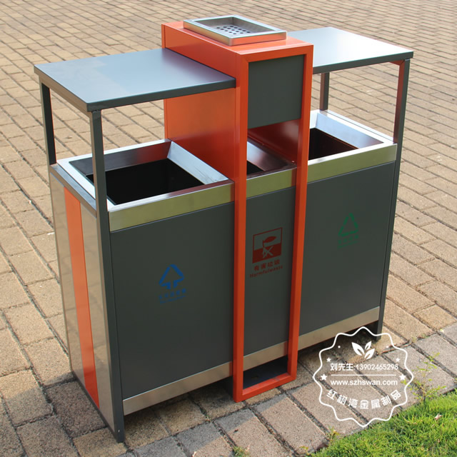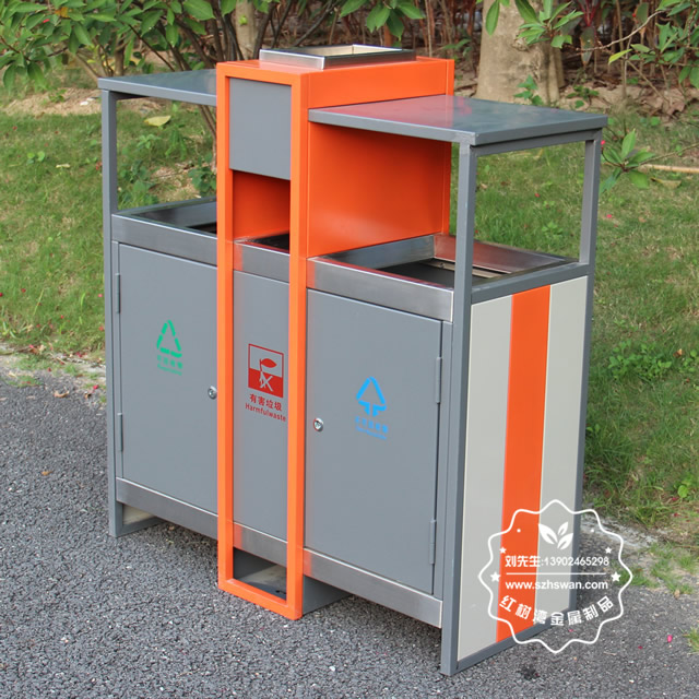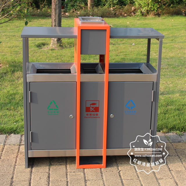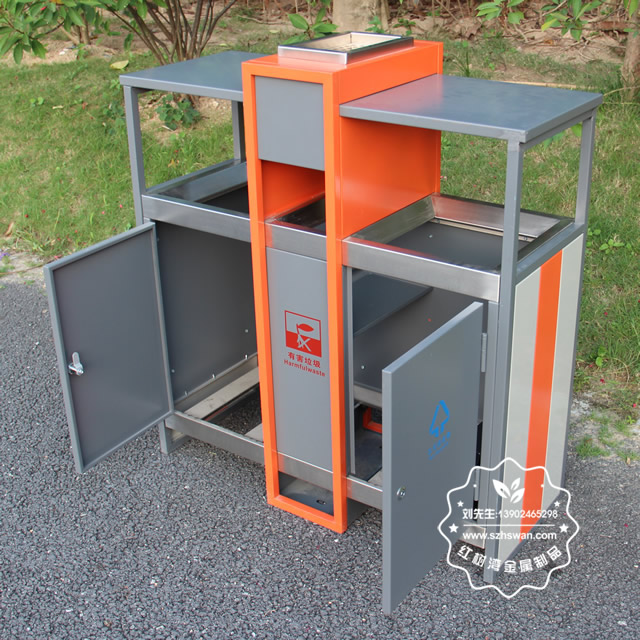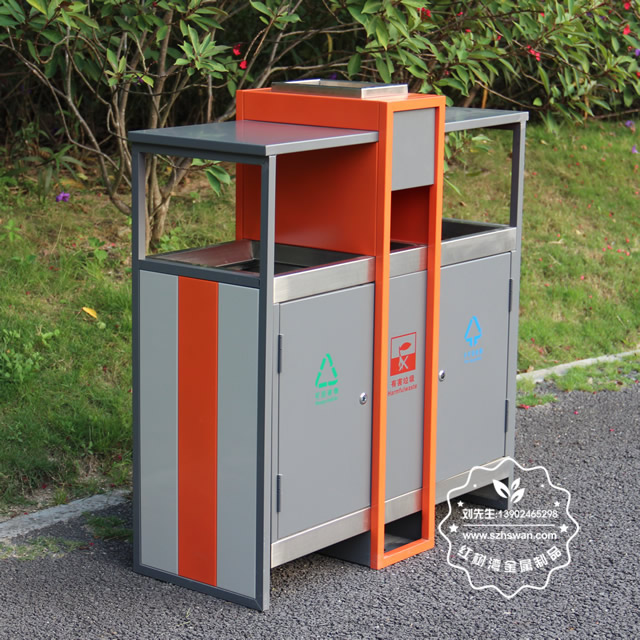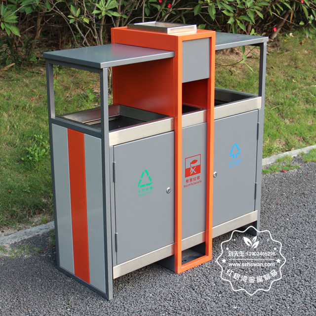 產(chǎn)品材質(zhì):環(huán)保鋼制垃圾桶表面經(jīng)過除油、噴砂防銹處理后,再進(jìn)行酸洗磷化處理;表面清理后整體進(jìn)行靜電噴涂或烤漆處理,靜電噴涂是經(jīng)過流水線高溫固化爐固化后再出爐冷卻,漆面色澤耐久,防腐防銹;