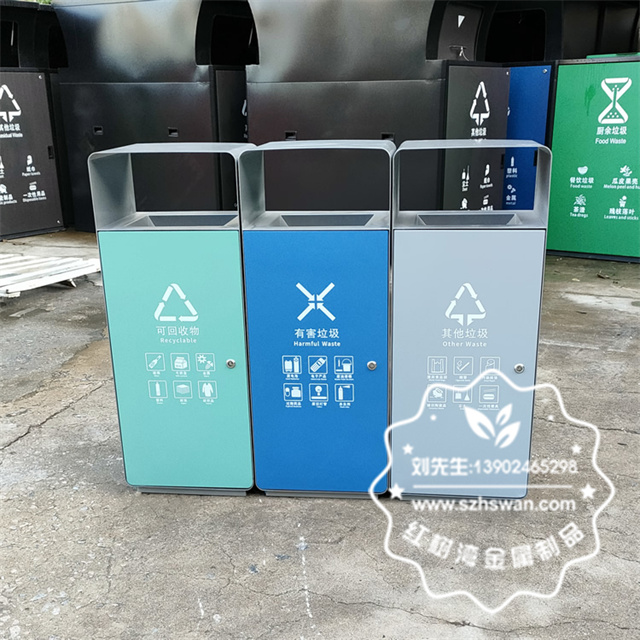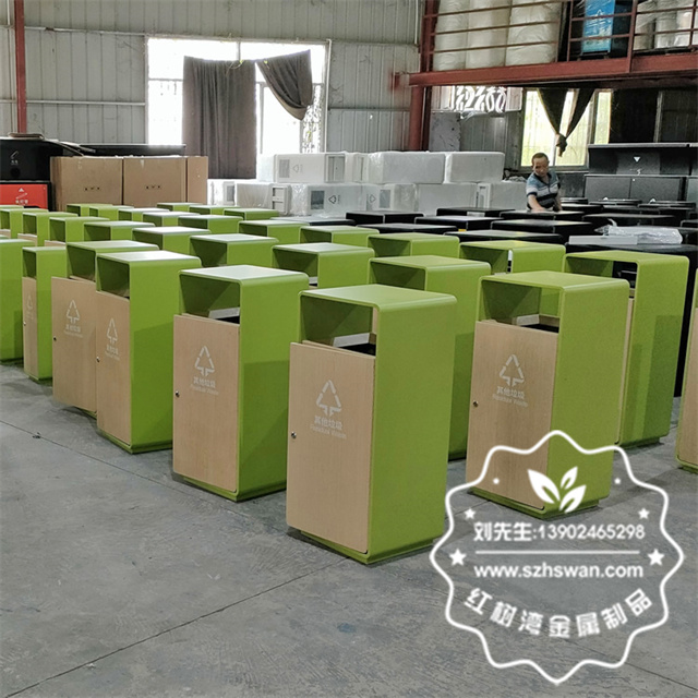 不銹鋼垃圾箱大多數是指以不銹鋼為主要原材料,經過一系列的鈑金加工制作而成專門用來收集垃圾的物品。不銹鋼垃圾箱比傳統意義上的不銹鋼垃圾桶要大一些,通過都會有分類功能。承載垃圾的地方會分成三個甚至更多的獨立空間,方便收集各種不同的垃圾,進行針對性的處理。不銹鋼垃圾箱的制作主要以耐腐蝕性、質量、外觀三個基本要求為主。因為大多數在室外的惡劣環境使用,所以制作的選材和加工的質量都非常重要,否則使用壽命會非常低。