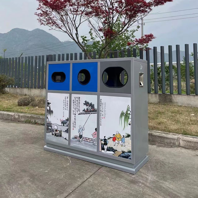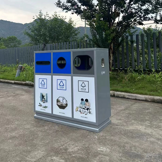 在公園中廣泛使用這款灰色噴粉鐵藝三分類垃圾桶,對于提升公園的整體環保水平有著重要意義。它不僅能引導游客養成良好的垃圾分類習慣,還能減少垃圾對公園環境的污染,保護公園的生態系統。當公園環境更加整潔、美麗時,游客們的游覽體驗也會得到極大提升,讓人們更愿意在這片綠色空間中放松身心,享受大自然的美好。