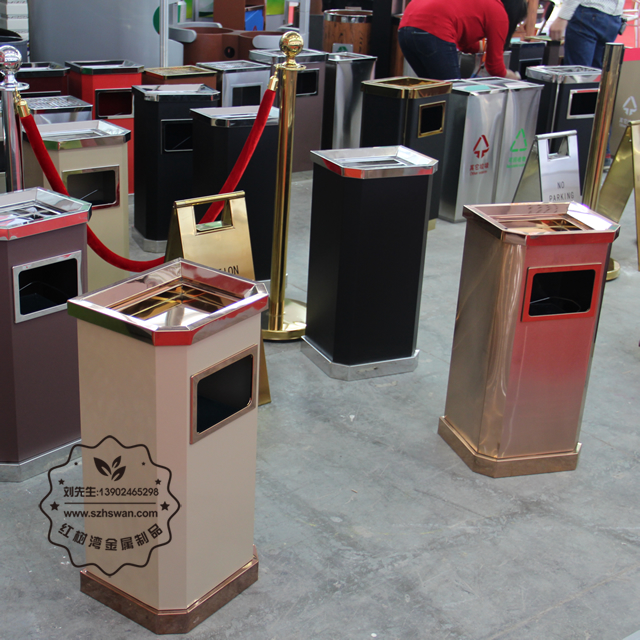 電梯口垃圾桶就是裝放垃圾的箱子,也叫垃圾箱、果皮箱、煙灰桶。本廠提供:不銹鋼垃圾桶(垃圾箱),不銹鋼煙灰桶、不銹鋼果皮箱(果皮桶),酒店大堂垃圾桶,賓館煙灰桶,樓梯口果皮箱,戶外垃圾桶,戶外分類環(huán)保果皮箱,電梯口垃圾桶,高檔垃圾桶(果皮箱、煙灰桶),鈦金垃圾桶/煙灰桶/果皮箱等。垃圾桶就使用場合可分為公共垃圾桶和家庭垃圾桶。就盛放垃圾形式可分為獨立垃圾桶和分類垃圾桶。就加工材料可分為塑料垃圾桶、不銹鋼垃圾桶、陶瓷垃圾桶、木質(zhì)垃圾桶、水泥垃圾桶和紙漿垃圾桶等等。就開啟方式有敞口式、揭蓋式、踩踏開蓋、感應式(紅外線)等。垃圾桶是社會文化的一種折射。
