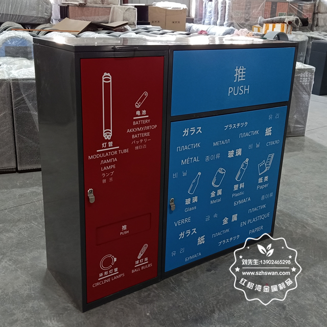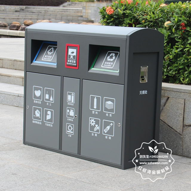 分類垃圾桶:采用優質工程材料制造,經久耐用,輕巧靈活,外型美觀,利于環保。
