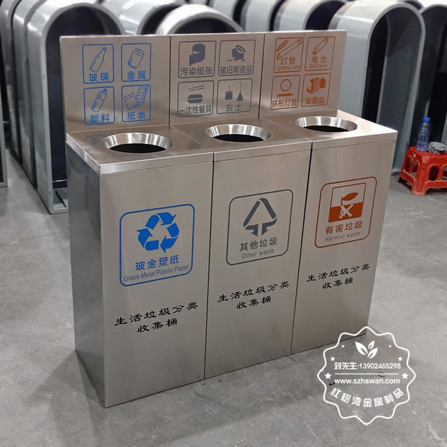 不銹鋼分類垃圾桶:生活垃圾被重新劃分為四類,它們分別是可回收垃圾、不可回收垃圾、有害垃圾和其他垃圾。