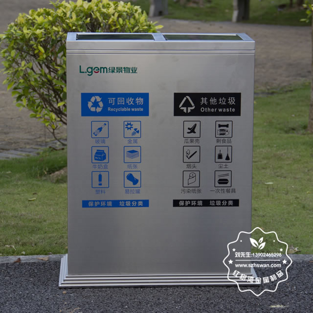 產品材質:不銹鋼垃圾桶采用201#,202#,304#優質不銹鋼材料模壓成型,堅固耐用;內外表面光潔,減少垃圾殘留,易于清潔;配置鍍鋅板內桶,便于垃圾清倒;