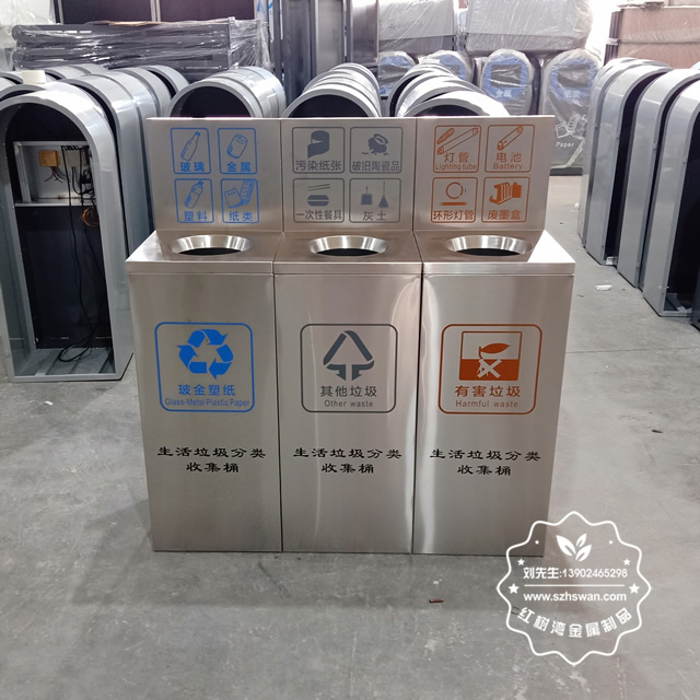 產品材質:室內方形直投口不銹鋼垃圾桶采用201#,202#,304#優質不銹鋼材料模壓成型,堅固耐用;內外表面光潔,減少垃圾殘留,易于清潔;配置鍍鋅板內桶,便于垃圾清倒;