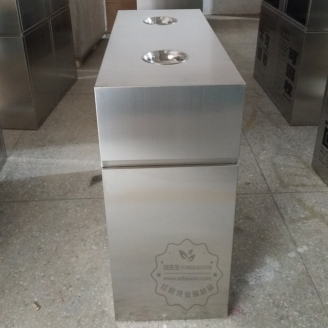 這款雙分類戶外不銹鋼垃圾桶采用304不銹鋼板制作,產品型號:C313,產品尺寸:1000*400*900mm,內筒:鍍鋅板,煙灰缸:雙煙灰缸,形狀:立體長方形,開門設計:垃圾箱背后三角鑰匙開門,絲印了可回收、不可回收還有一些創意的韓文,起到了良好的裝飾效果,這款垃圾桶是我們紅樹灣金屬制品廠家賣的比較好的產品。
