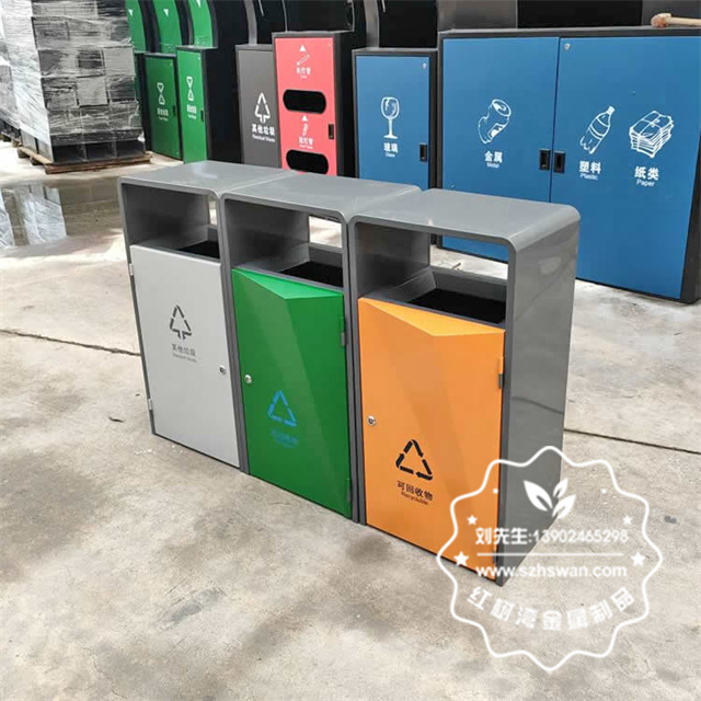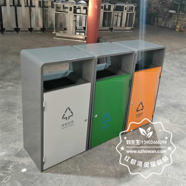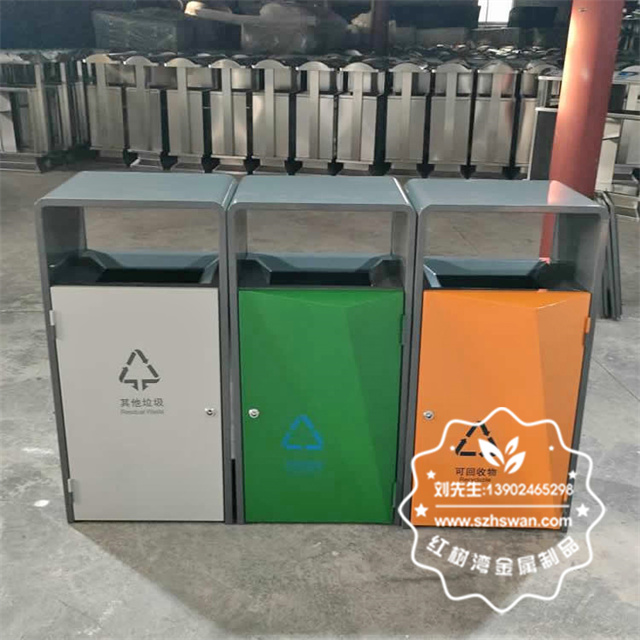 深圳寶安學校菱形不銹鋼分類垃圾桶制作精良,戶外方形單筒組合式分類設計,注重產品細節部位處理堅固耐用,安全無利口,不傷手,304#或201不銹鋼外筒,內筒采用玻璃鋼內筒,另外選擇鍍鋅板、不銹鋼板、或者塑料內筒等等,便于垃圾清倒;適合擺放場景:戶外校園學校、物業小區、公園景區、城市廣場等等。